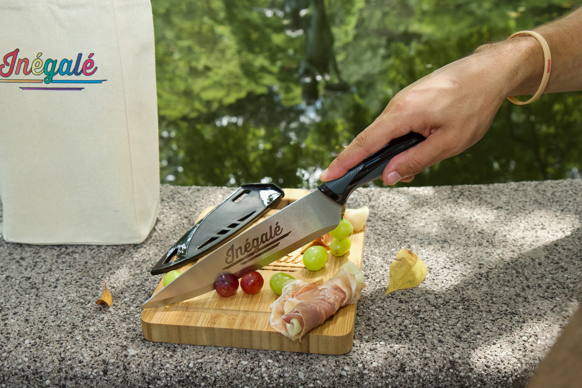 Cutting board, knife and metal toothpick